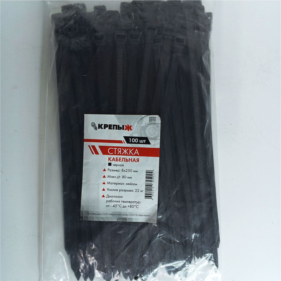 Хомут нейлоновый 8*250 мм черный КРЕПЫЖ