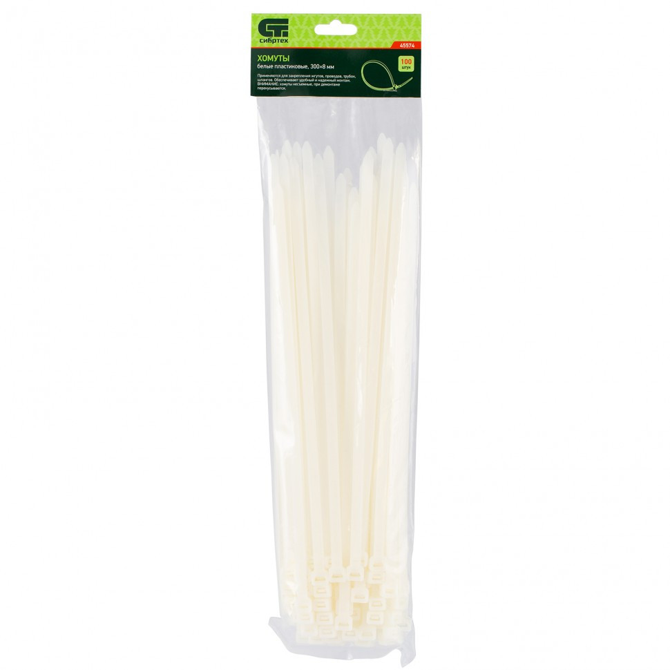 Хомуты, 300 х 8 мм, пластиковые, белые, 100 шт Сибртех