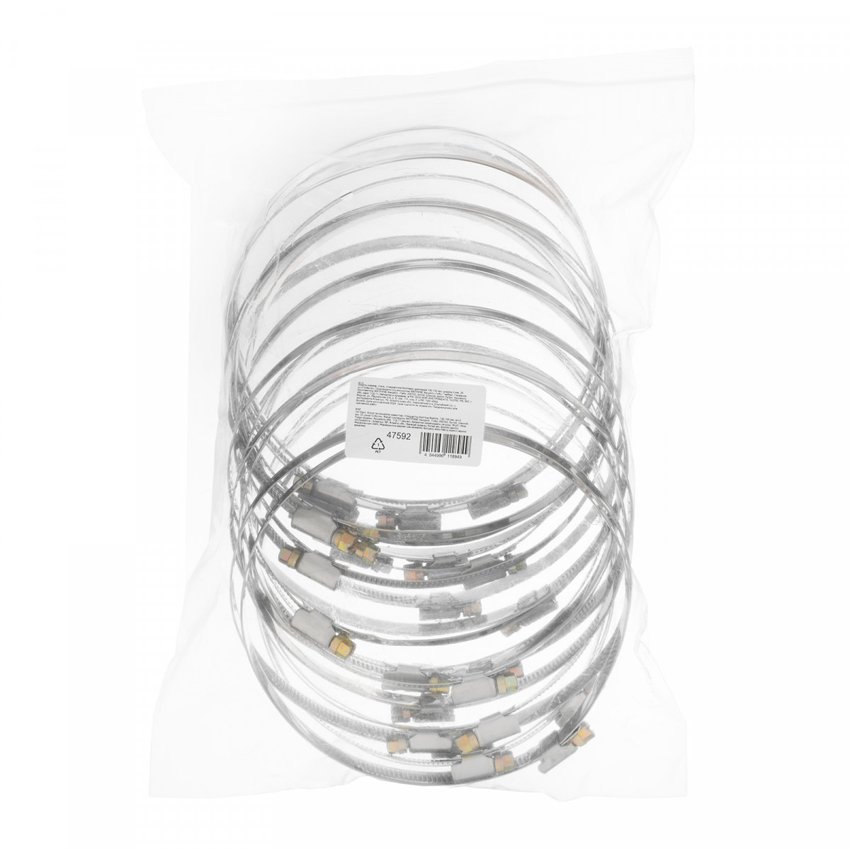 Хомуты Сибртех 47592 из нержавеющей стали, со стандартным болтовым креплением, с диаметом охвата 130-150 мм, шириной 9 мм, 25 шт. в упаковке, — крепежные элементы, применяющиеся для соединения шлангов и труб. Подходят для многократного использования. Хомуты затягиваются винтами, что обеспечивает удобство и надежность фиксации. Могут быть использованы для монтажа трубопроводных систем и обеспечения герметичных соединений в различных инженерных и транспортных системах.