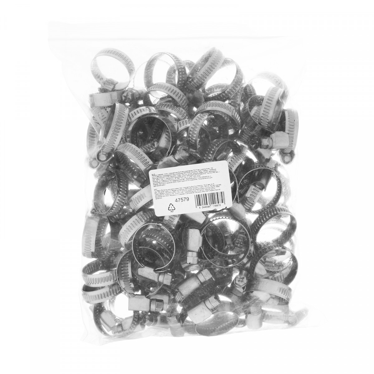 Хомуты нержавеющая сталь, Стандартное болтовое крепление 16-27 мм, 100 штук в упаковке, ширина 9 мм Сибртех