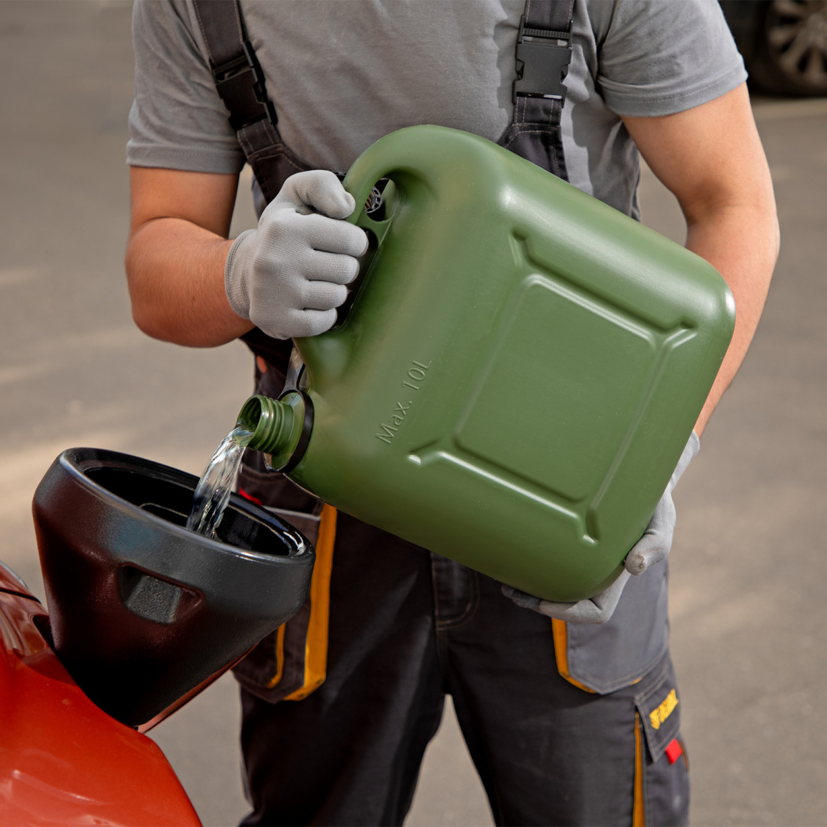• Комфортное использование — специальный носик позволяет переливать бензин без риска испачкаться.