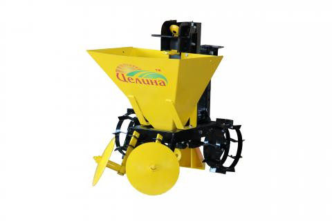 Навесное оборудование для мотоблоков предназначенное для посадки картофеля. Приставка имеет грунтозацепы и дисковый окучник, что позволяет одновременно с посадкой нарезать почвенные борозды.