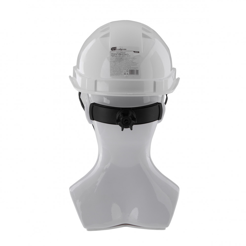 Каска защитная с храповым механизмом, Европласт, белая Сибртех