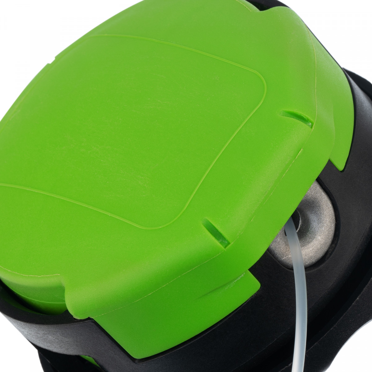 - Быстрое обновление лески — не нужно выключать триммер, достаточно слегка ударить катушкой о землю.