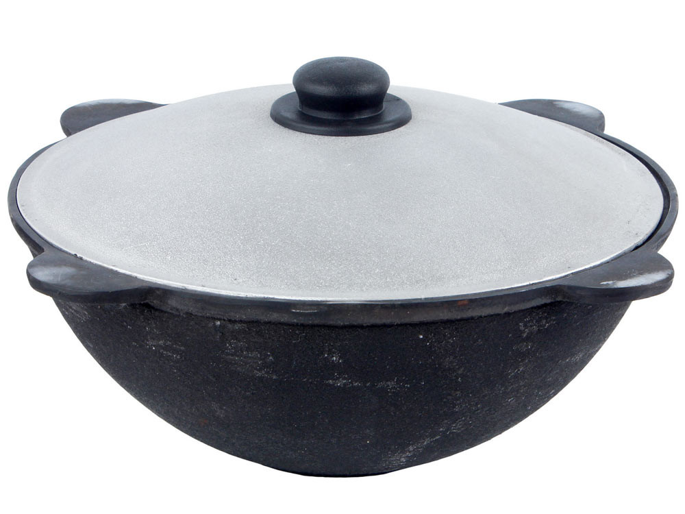 Узбекский чугунный казан - отличное решение для любителей готовить на костре. Этот тяжеловесный узбекский казан вылит из чистого чугуна, без примесей, что гарантирует качество казана. Казан комплектуется алюминиевой крышкой.