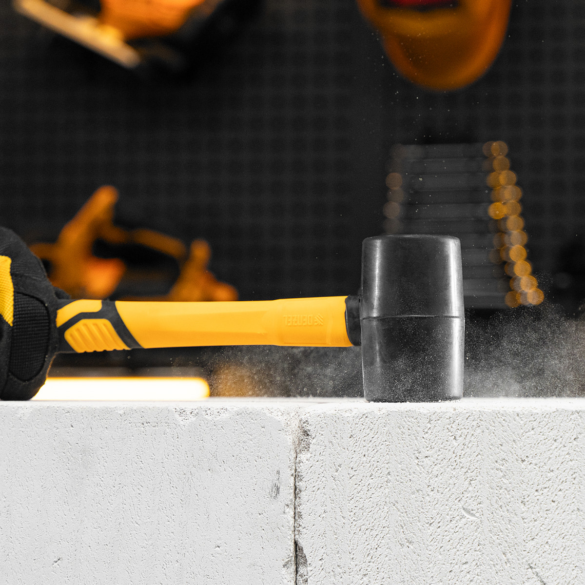 Киянка резиновая, 225 г, черная, фибергласовая рукоятка c TPR покрытием Denzel