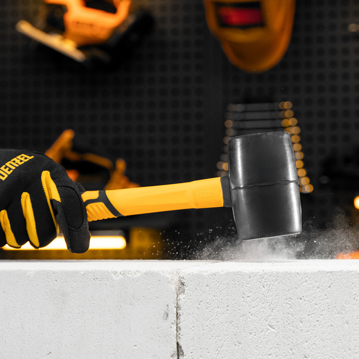 Киянка резиновая, 450 г, черная, фибергласовая рукоятка c TPR покрытием Denzel