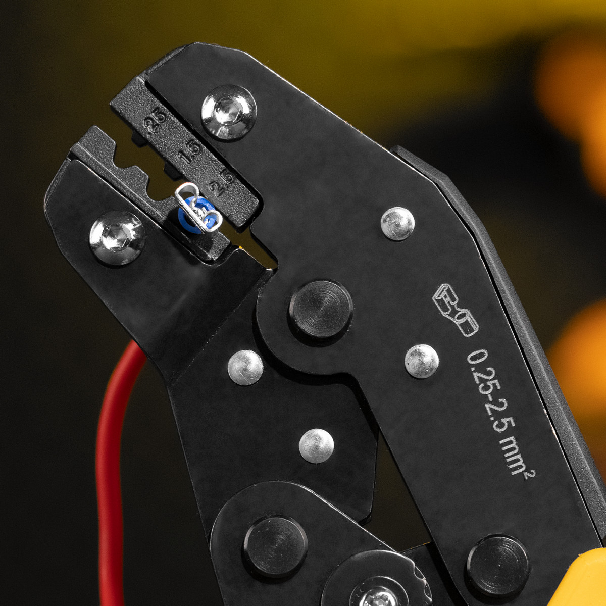 Клещи Denzel 17745 предназначены для обжима неизолированных наконечников кольцевых НК и вилочных НВ, разъемов плоских РП сечением 0,25-2,5 мм². Инструмент пригодится частным и профессиональным мастерам при проведении электромонтажных работ.