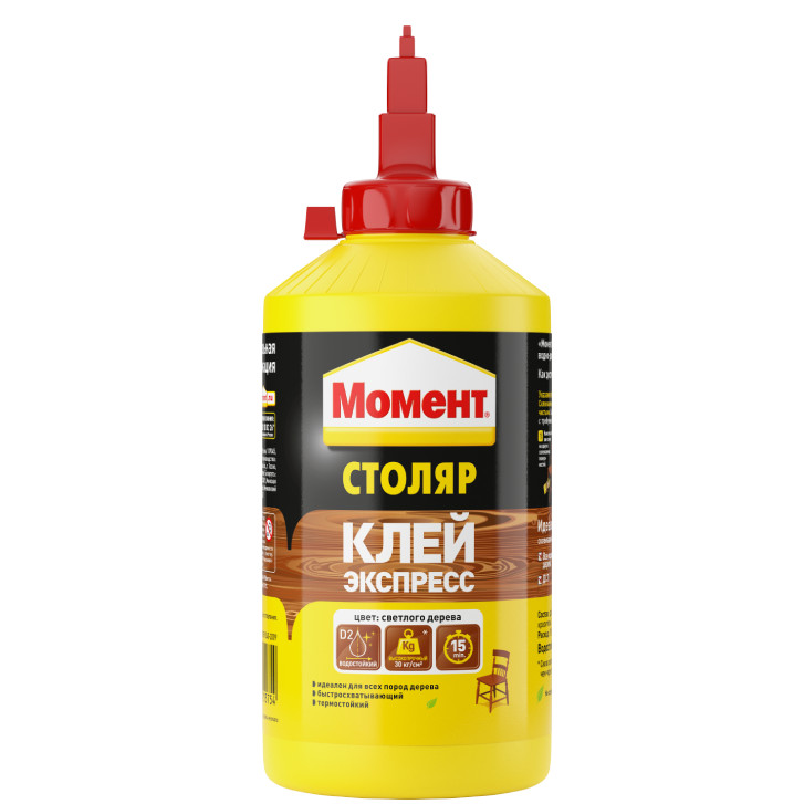 Клей для столяров-профессионалов и домашних умельцев. Высокое качество Вам гарантирует рецептура и современные технологии производства. Клей предназначен для склеивания в любых сочетаниях всех пород дерева, ДСП, фанеры, шпона, ламината, картона, фурнитуры, ткани, кожи, некоторых пластиков. Клей применяется при сборке и ремонте мебели, приклеивании шпона, ламинировании. Основные свойства: - Высокая прочность склеивания; - Средняя вязкость; - Быстросхватывающий - высокая прочность приклеивания достигается уже через 5 минут после прижатия; - Прозрачный эластичный клеевой шов; - Устойчив к кратковремнному воздействию воды и в соответствии DIN EN 204 относится по водостойкости к группе D2; - Высокая теплостойкость; - Устойчив к старению.