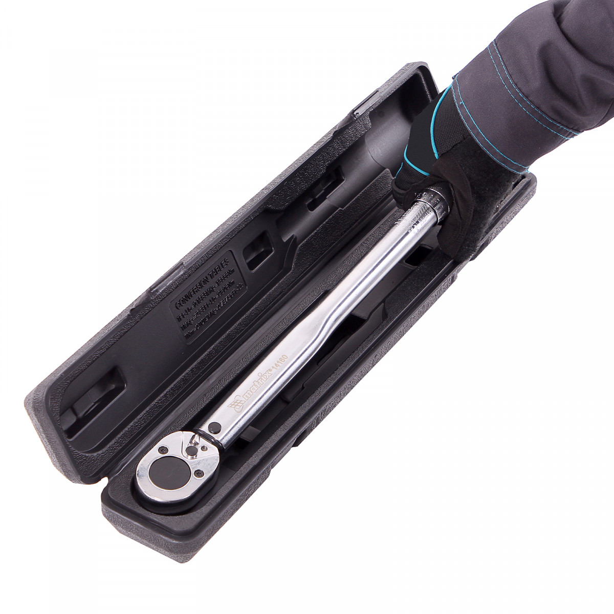 Хромированный динамометрический ключ Matrix 14160 из стали CrV, с посадочным квадратом 1/2", позволяет затягивать резьбовые соединения с максимальным усилием от 42 до 210 Нм. Щелчковый механизм контроля удобен для работы в условиях плохой видимости. Ключ используется в ремонтных мастерских, на СТО, пригодится также для самостоятельного обслуживания авто.