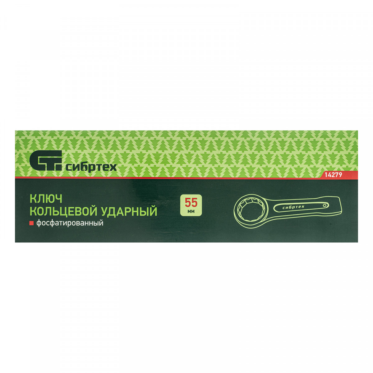 Ключ кольцевой ударный Сибртех 14279 позволяет откручивать и закручивать резьбовые соединения размером 55 мм. Благодаря 12-гранному профилю надежно удерживает головку крепежа. Удобен для работы в ограниченном пространстве — для перестановки его достаточно повернуть на 30°. Инструмент применяется в слесарных мастерских, будет полезен во время ремонта, а также для решения бытовых задач.