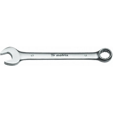 Ключ изготовлен из хромванадиевой стали. Твердость материала рабочей части ключа 45 HRc (требования ГОСТ – 45–51 HRc). Ключ имеет антикоррозионное покрытие из хрома. Профиль кольцевого зева имеет 12 граней, что увеличивает площадь соприкосновения рабочих поверхностей и снижает риск деформации граней крепежа при монтаже. Угол наклона кольцевого зева относительно плоскости ключа в 15 градусов делает монтаж более удобным. Ключ гаечный комбинированный с открытым и кольцевым зевом предназначен для монтажа демонтажа резьбовых соединений.
