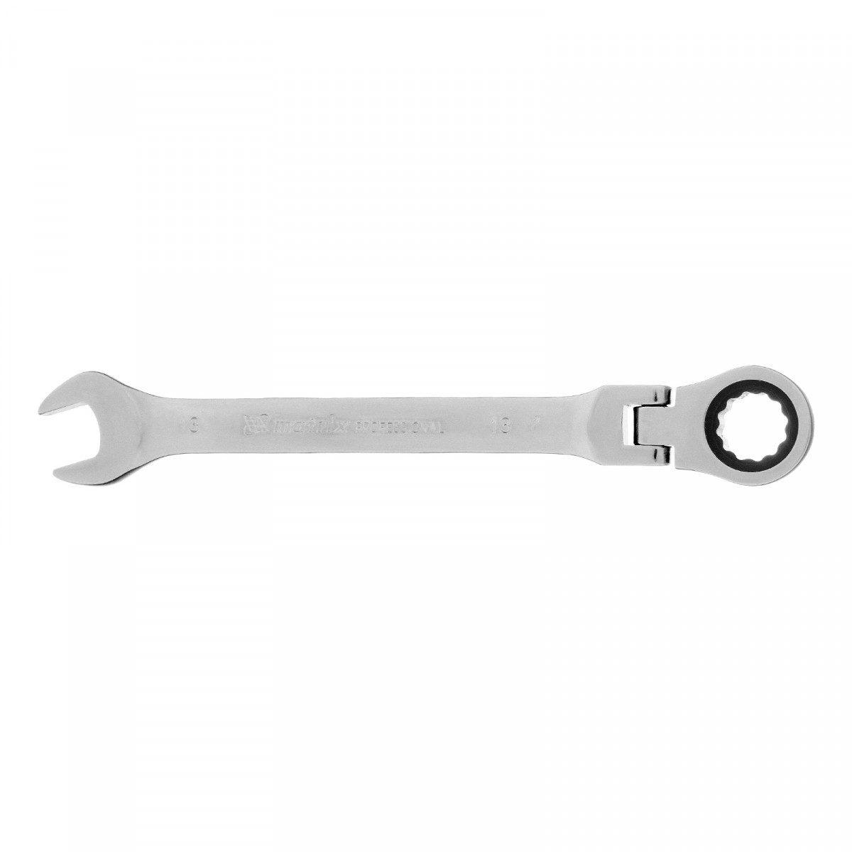 Ключ комбинированный трещоточный, 13 мм, CrV, шарнирный, зеркальный хром Matrix Professional