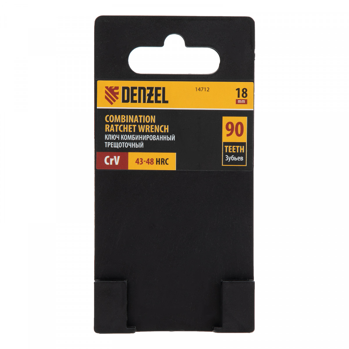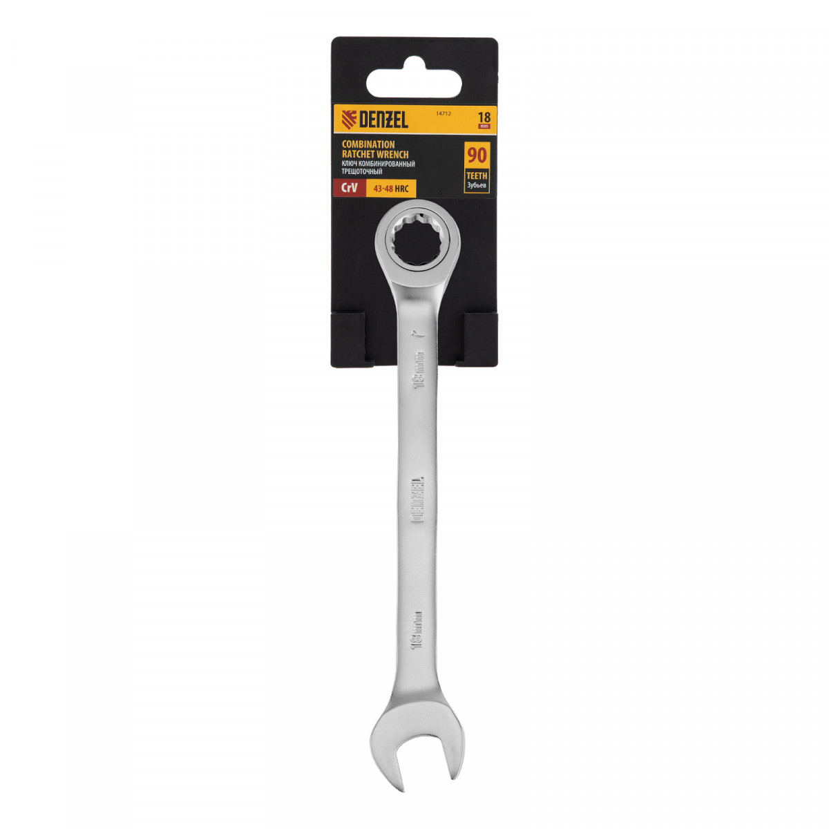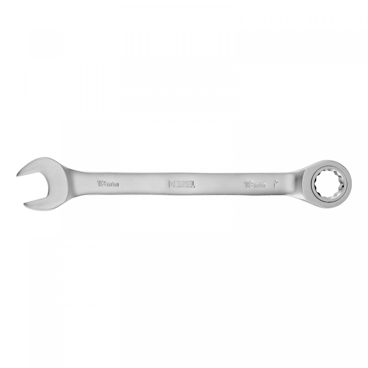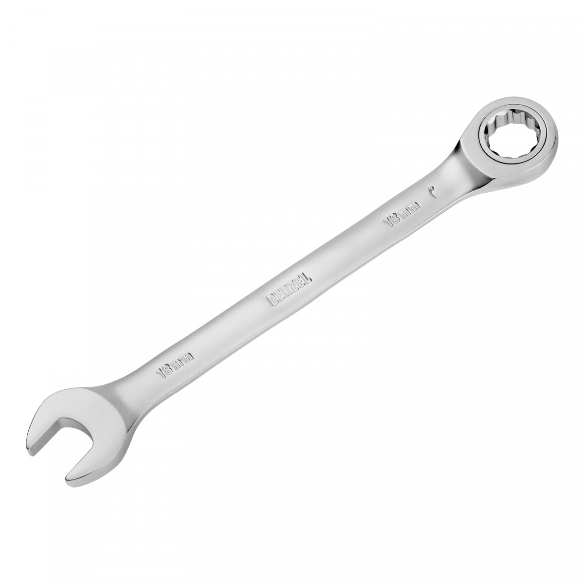 Ключ комбинированный трещоточный, 18 мм, CrV, матовый хром Denzel