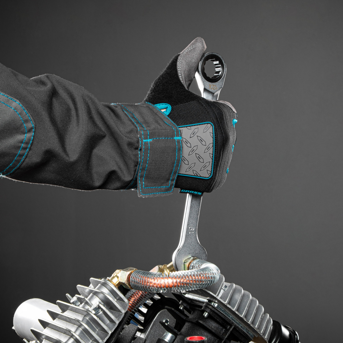 • Благодаря матовому покрытию ключ не выскальзывает из рук, даже если они в масле.
