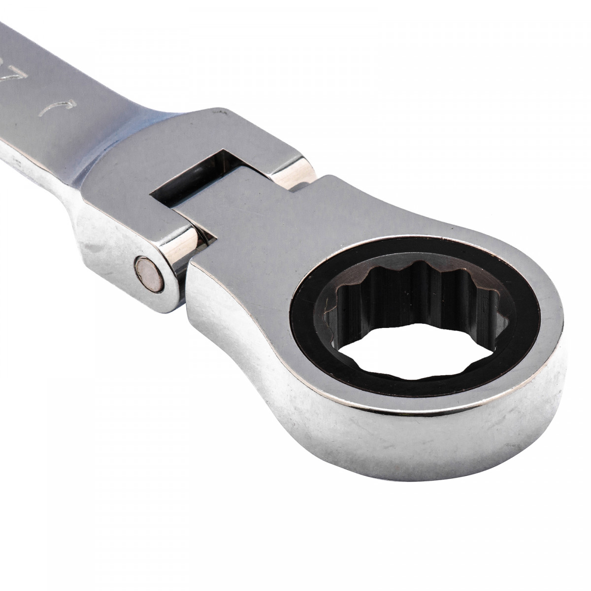 • Удобная работа в труднодоступных местах — храповой механизм на 72 зуба обеспечивает плавное вращение (шаг трещотки составляет 5°), а шарнир позволяет поворачивать рабочую часть под углом.