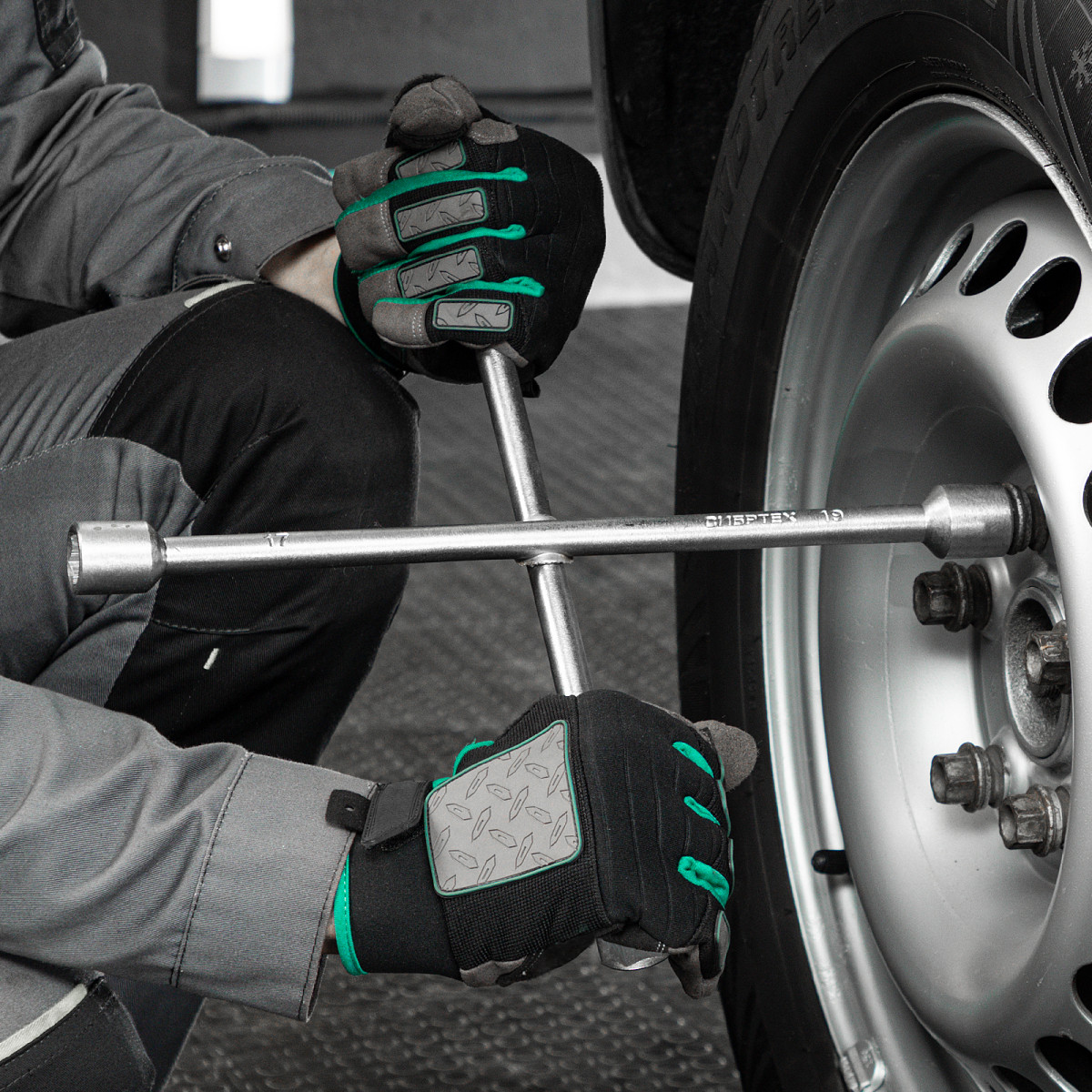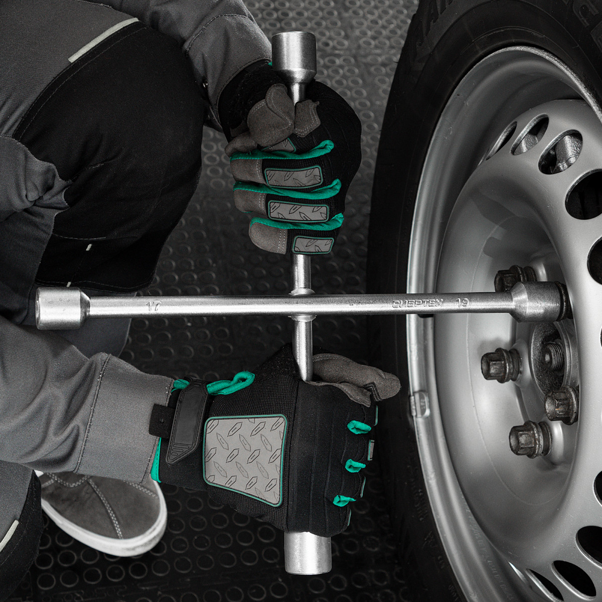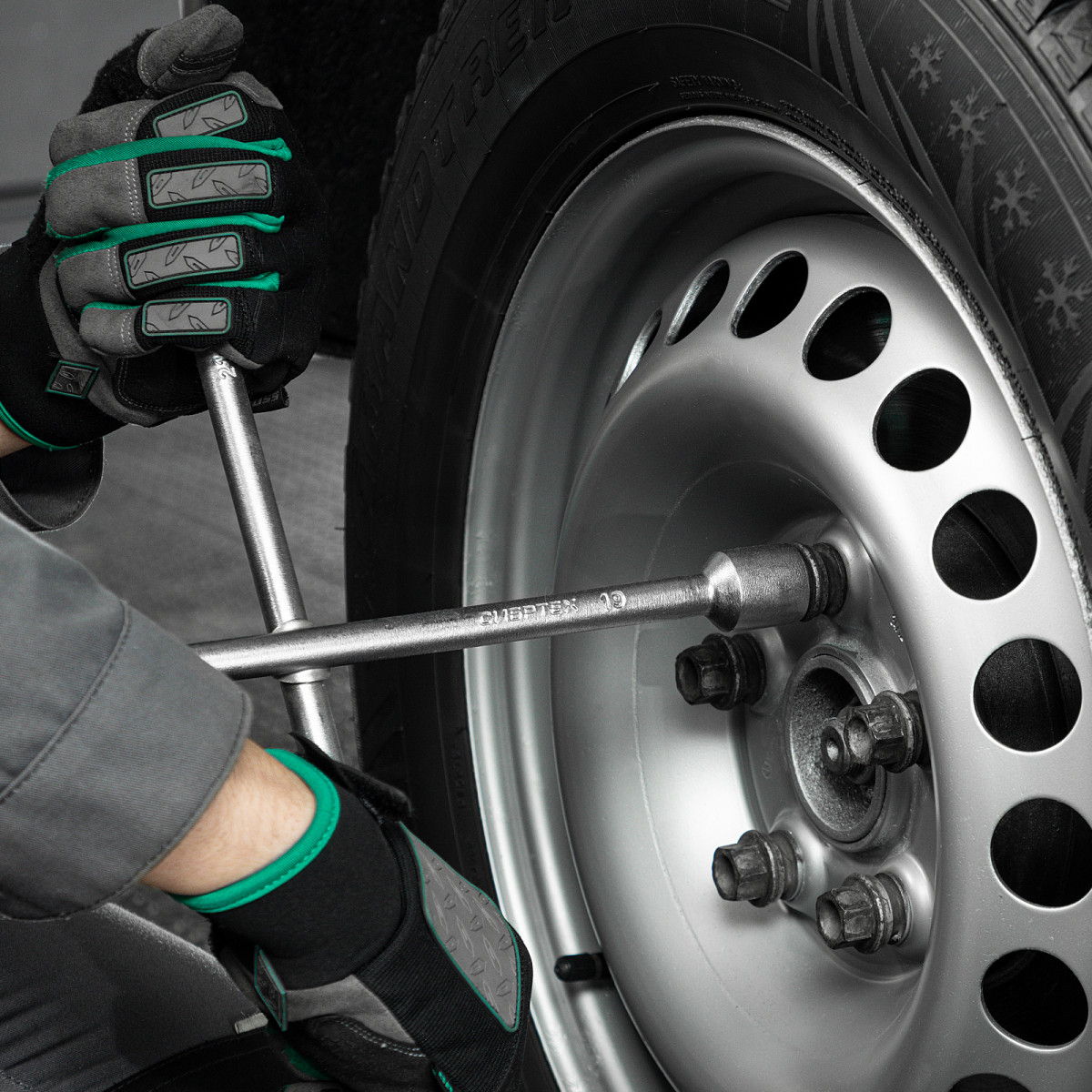 Баллонный ключ-крест Сибртех 14258 под квадрат 1/2", с толщиной прутьев 14 мм и размерами головок 17, 19, 21 мм используется для снятия и монтажа автомобильных колес. 3 несъемные шестигранные торцевые головки подходят для колесных гаек и болтов наиболее распространенных размеров. Инструмент будет полезен работникам станций шиномонтажа и автосервисов, а также пригодится автовладельцам.