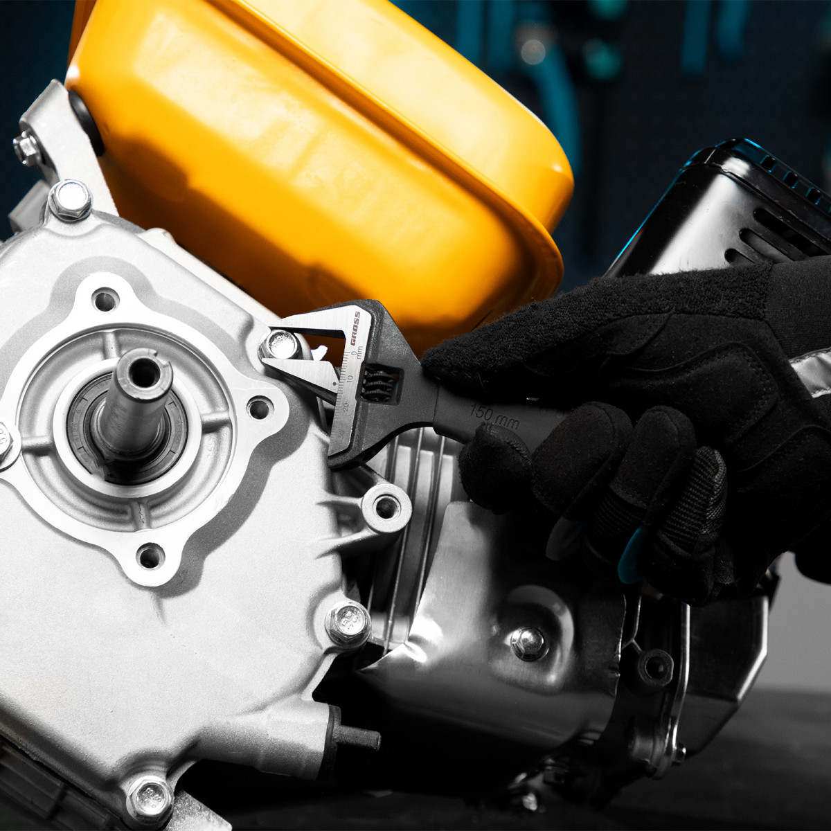 Разводной ключ Gross 15567 из стали CrV, длиной 150 мм, с тонкими губками и защитными насадками, обеспечивает ширину раскрытия губок на 30% больше, чем у стандартных моделей. Инструмент подходит для монтажа и демонтажа крепежных элементов диаметром до 35 мм. Применяется для сантехнических работ, ремонта автомобилей, решения бытовых задач. Тонкие губки легко проникают в труднодоступные места, а также удобны для захвата мелких деталей.