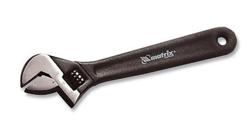 Ключ разводной, 250 мм, полиамидная ручка, CrV MATRIX MASTER Рожковый разводной ключ изготовлен из хромованадиевой стали, губки закалены токами высокой частоты. Встроенный в тело ключа червячно-винтовой механизм защищен от коррозии. Полиамидная эргономичная рукоятка позволяет работать максимально удобно. Головка ключа имеет мерную шкалу для определения размера деталей. Улучшенная балансировка.