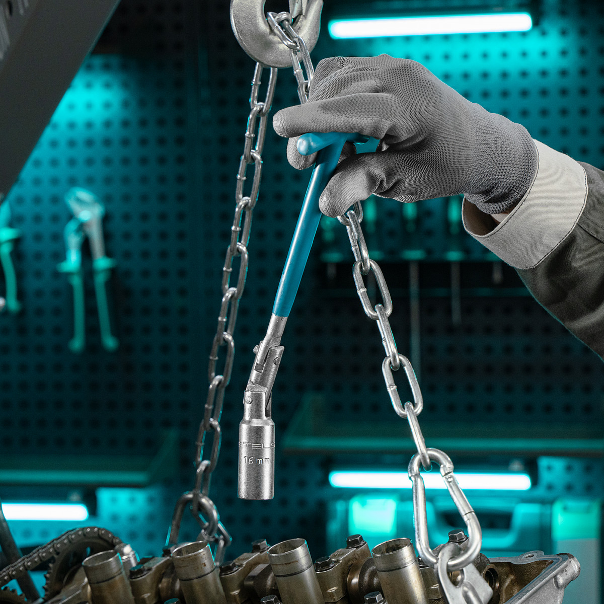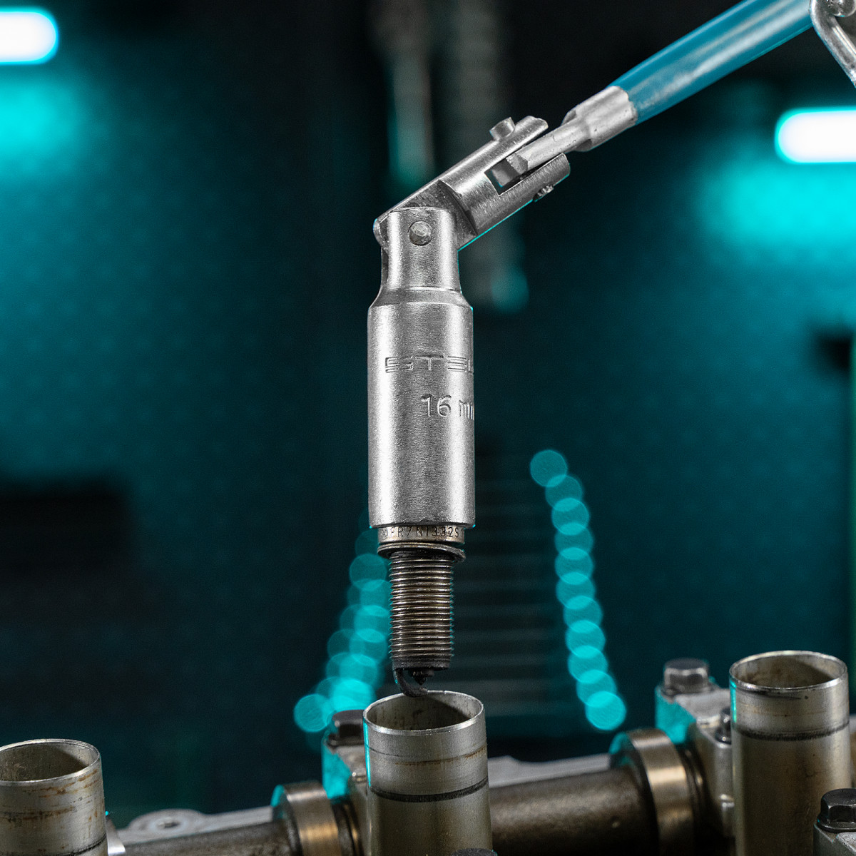 Свечной карданный ключ Stels 13841 размером 16 х 250 мм применяется для замены свечей зажигания в автомобиле. Он подойдет автолюбителям, частным и профессиональным мастерам для использования в гараже или на СТО. Двойной карданный механизм позволяет с удобством работать в труднодоступных местах. Резиновый фиксатор на ключе обеспечивает надежное удержание свечей.