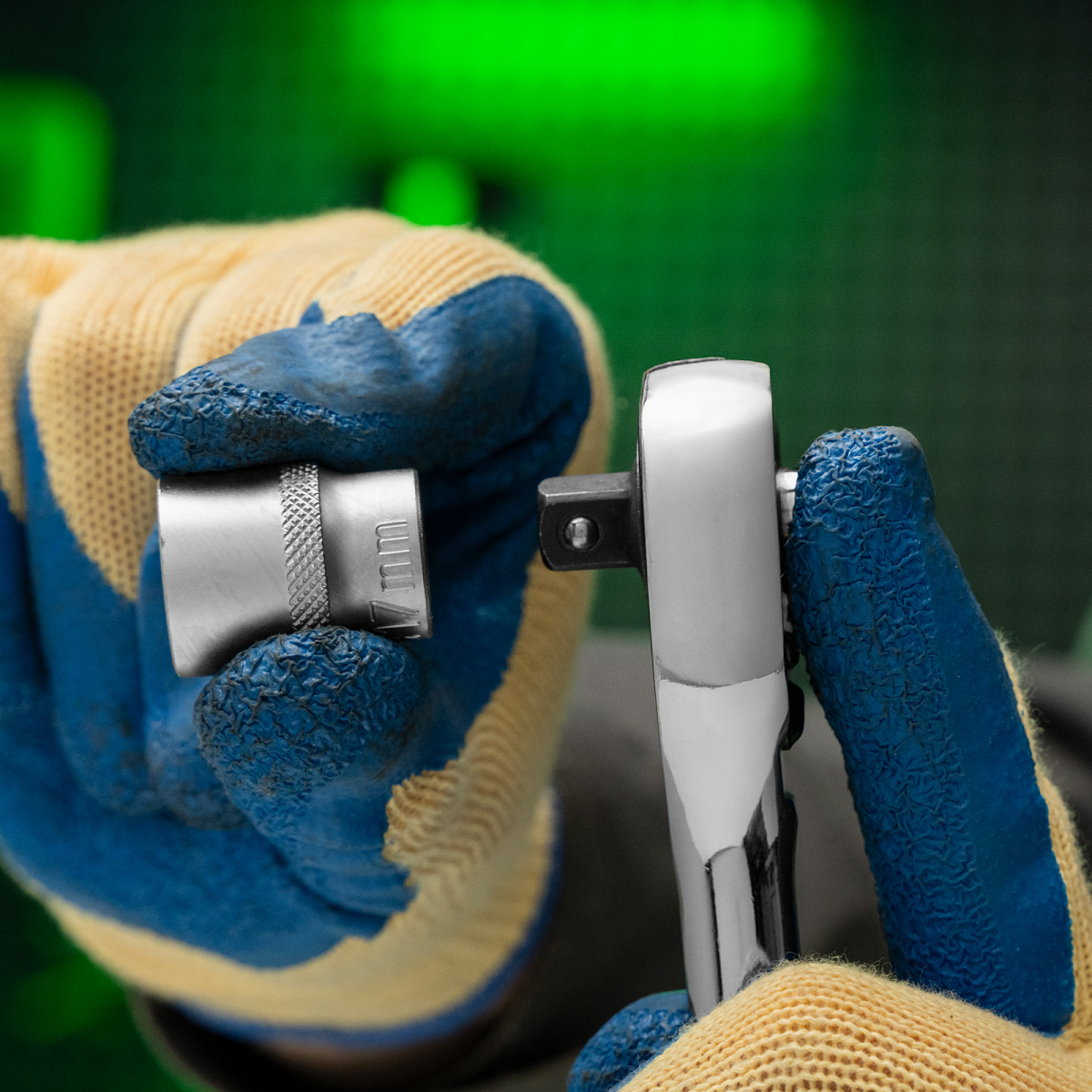 • Надежная фиксация — шариковый замок крепко удерживает торцевую головку, поэтому она не соскочит во время работы.