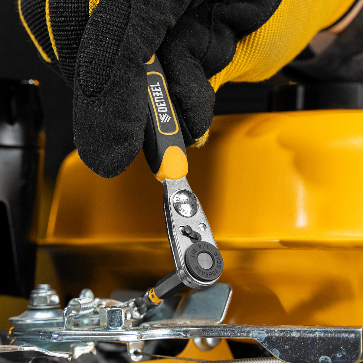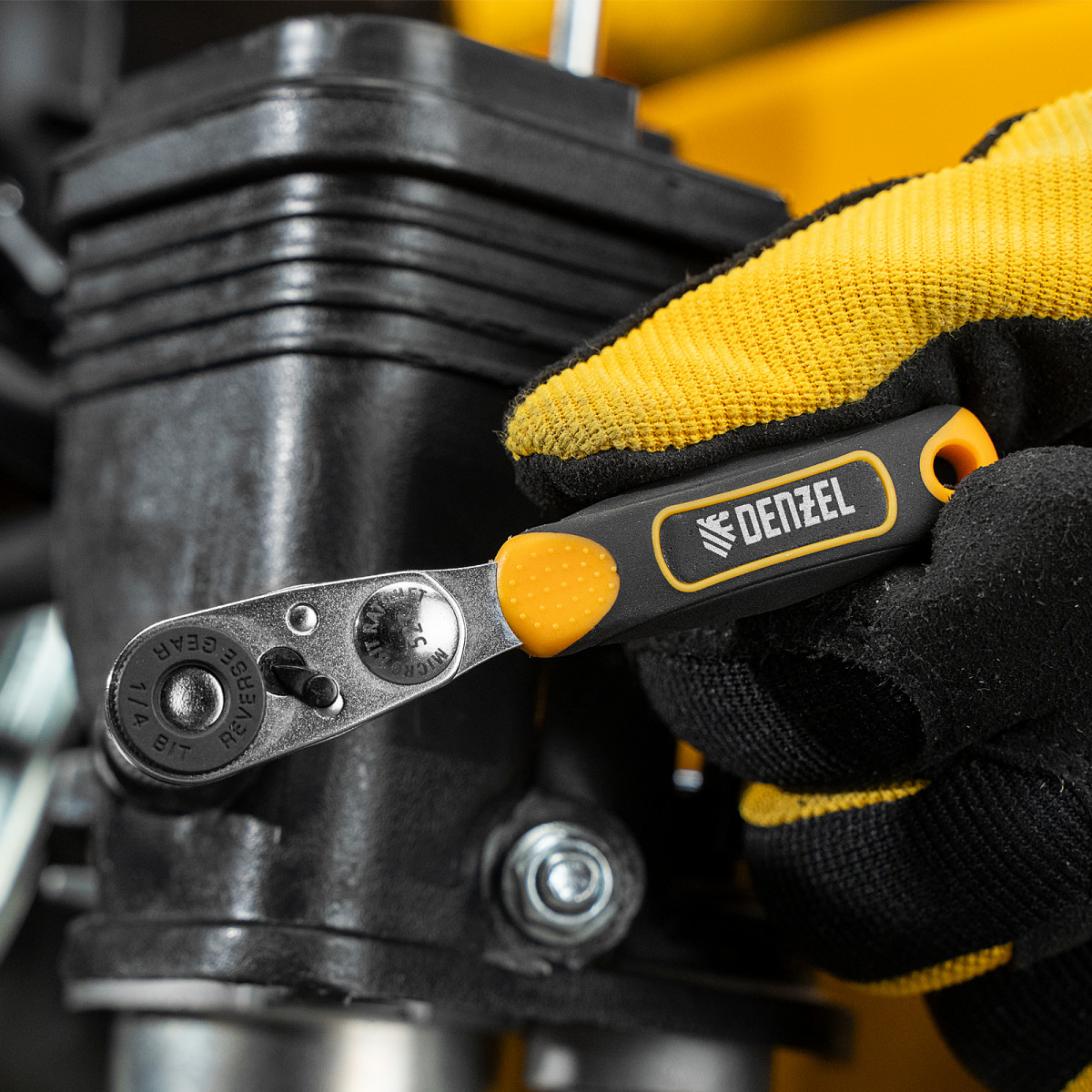 Ключ-трещотка для бит 1/4", 52 зуба, CrMo, адаптер для торцевых головок Denzel