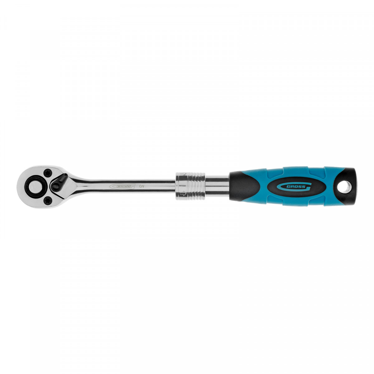 Ключ-трещотка телескопический 1/4", 150-200 мм, CrV, 72 зуба, с быстрым сбросом, хром Gross