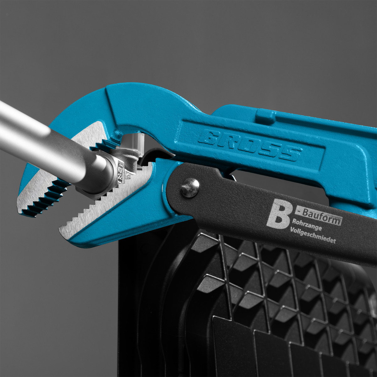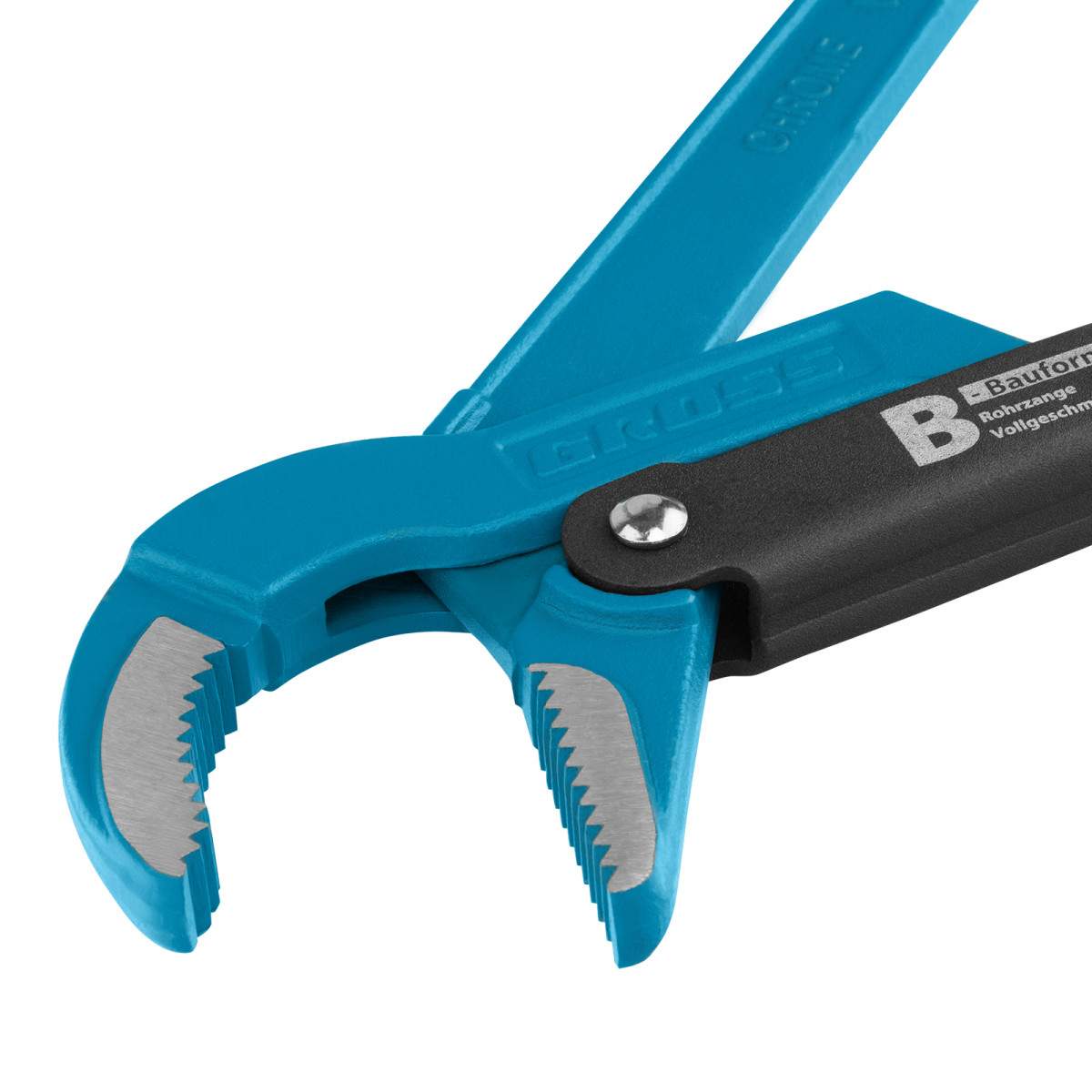 • Высокая прочность — цельнокованый корпус изготовлен из хромованадиевой стали, а губки закалены до твердости 57-60 HRC.