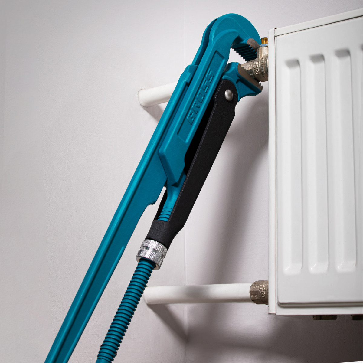 Самоблокируемый захват труб и деталей благодаря зубьям прогрессивной формы.