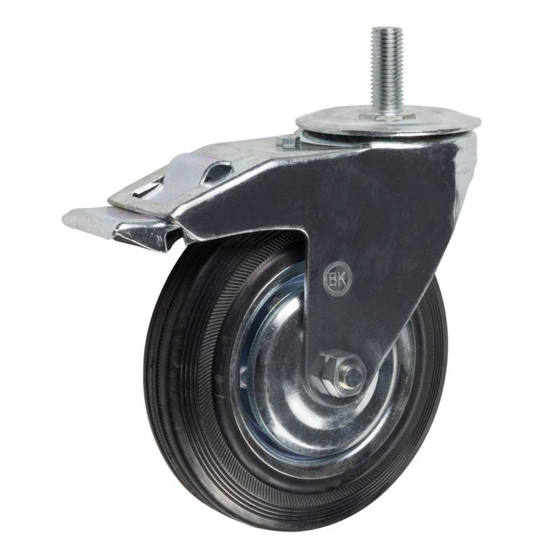 Колесная опора 100мм болт, поворотная, тормоз, черная резина, роликоподшипник