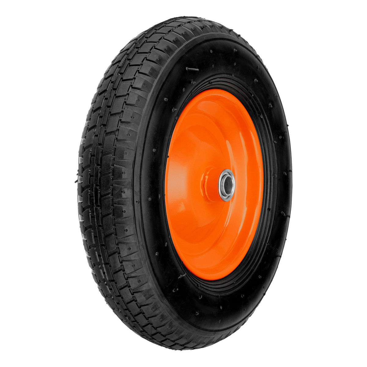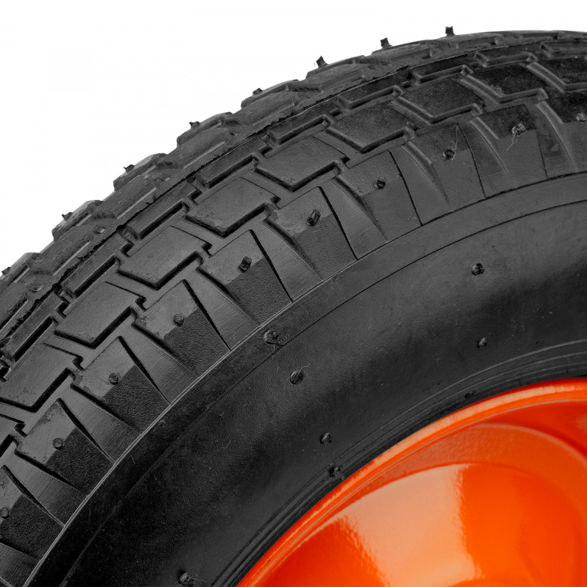 - Комфортная работа — пневматическое колесо эффективно поглощает вибрации даже при полной загрузке тачки.