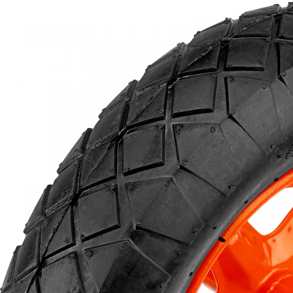 - Двухслойная покрышка с протектором — колесо устойчиво к повреждениям и обеспечивает маневренность тачки.