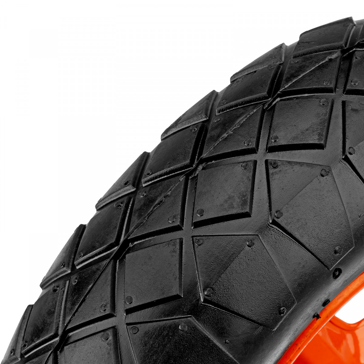 - Двухслойная покрышка с протектором — колесо устойчиво к повреждениям и обеспечивает маневренность тачки.