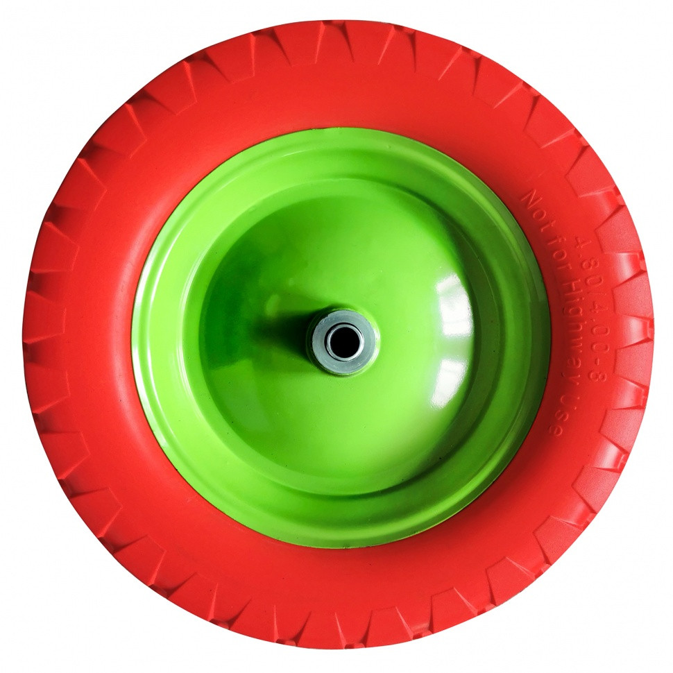 Полиуретановое колесо 4.80/4-8 Сибртех 689785 с длиной оси 90 мм и диаметром подшипника 12 мм — движущий элемент тачек Palisad 68918, 689183, 68935, Сибртех 68968, 689633 и др. Непрокалываемое колесо подходит для использования в самых жестких условиях. В отличие от пневматических колес не требует подкачки, обслуживания и легко отмывается от грязи.