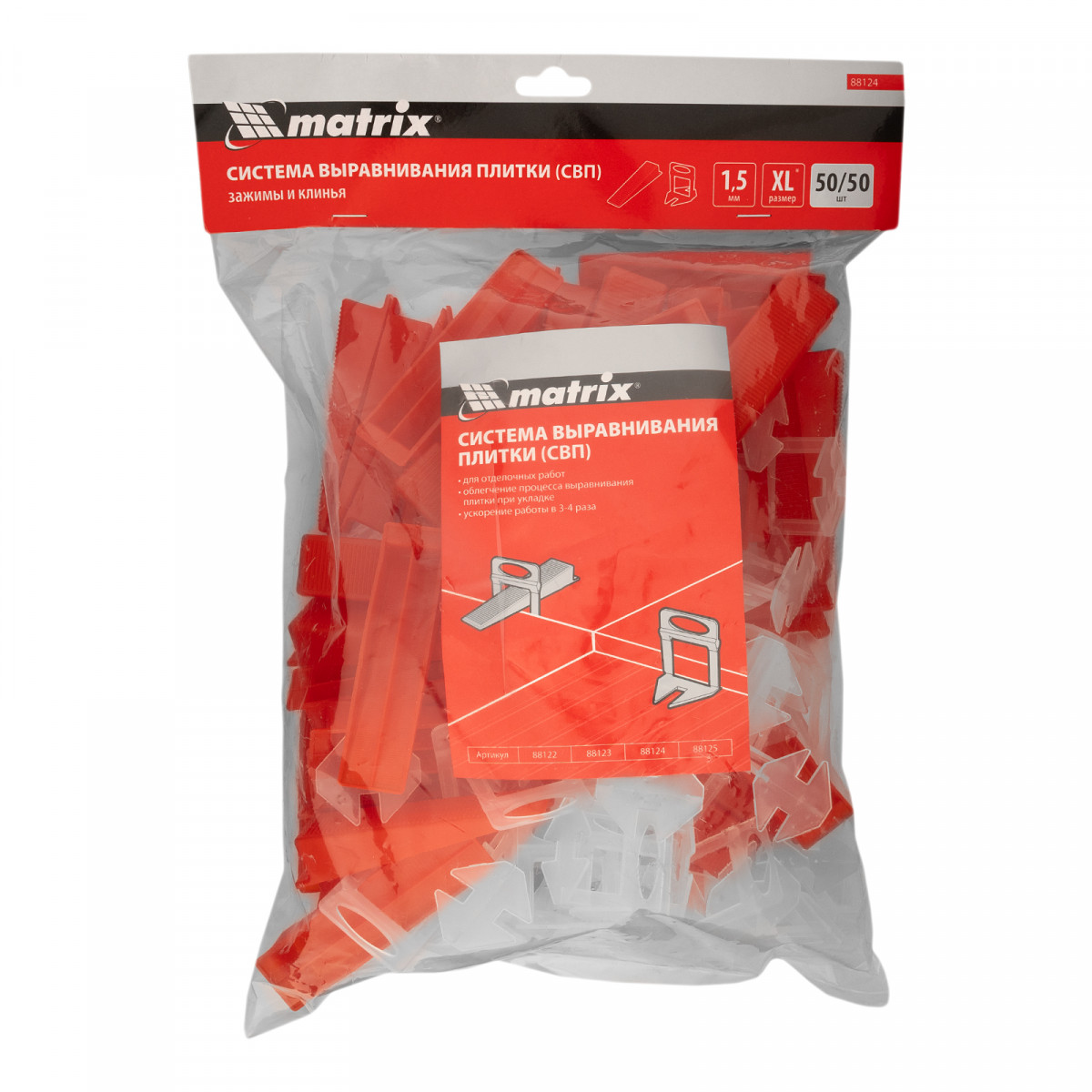 Комплект зажим + клин для системы выравнивания плитки СВП Ворота XL, 50/50 шт. в пакете Matrix