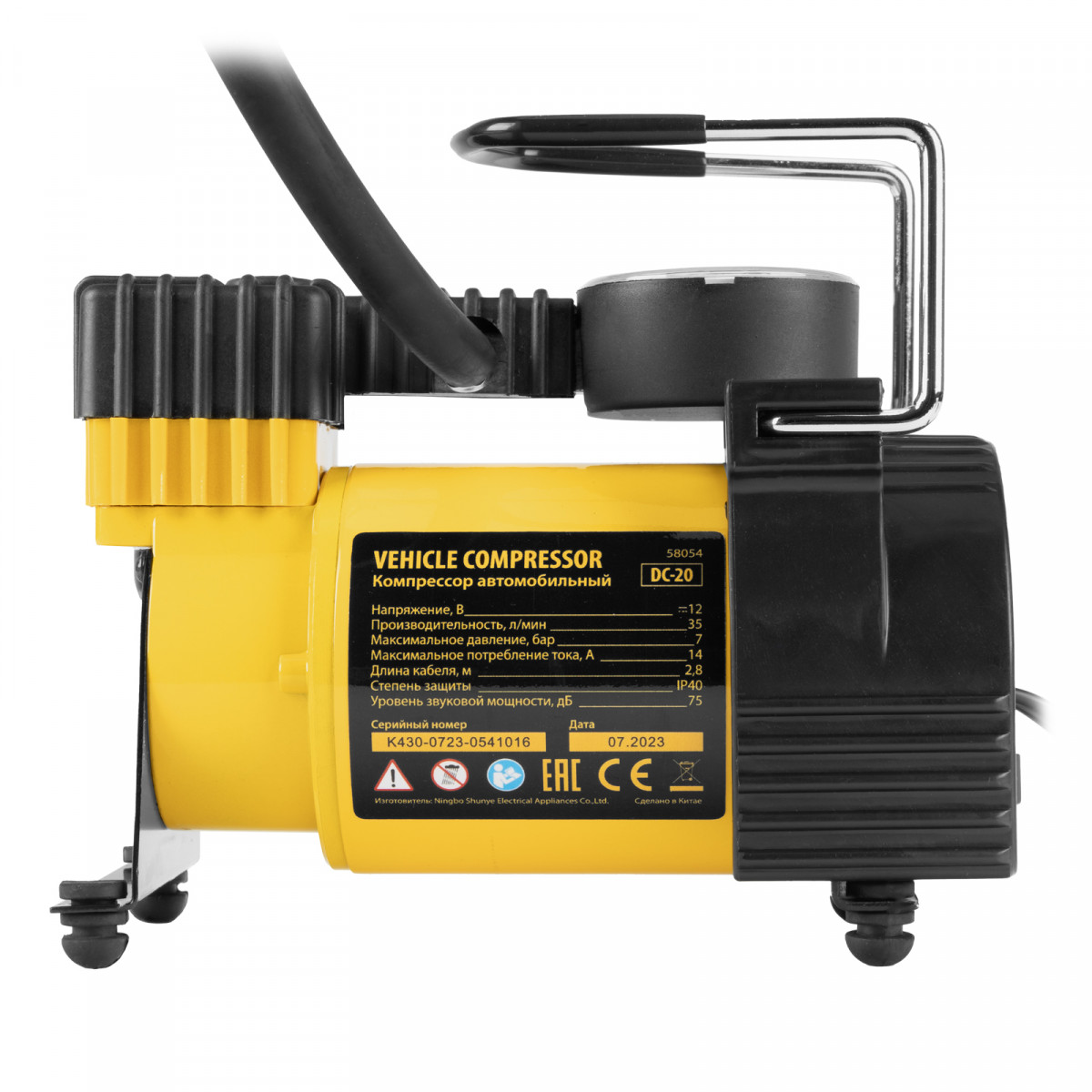 Компрессор автомобильный DС-20,12 В, 7 атм, 35 л/мин Denzel