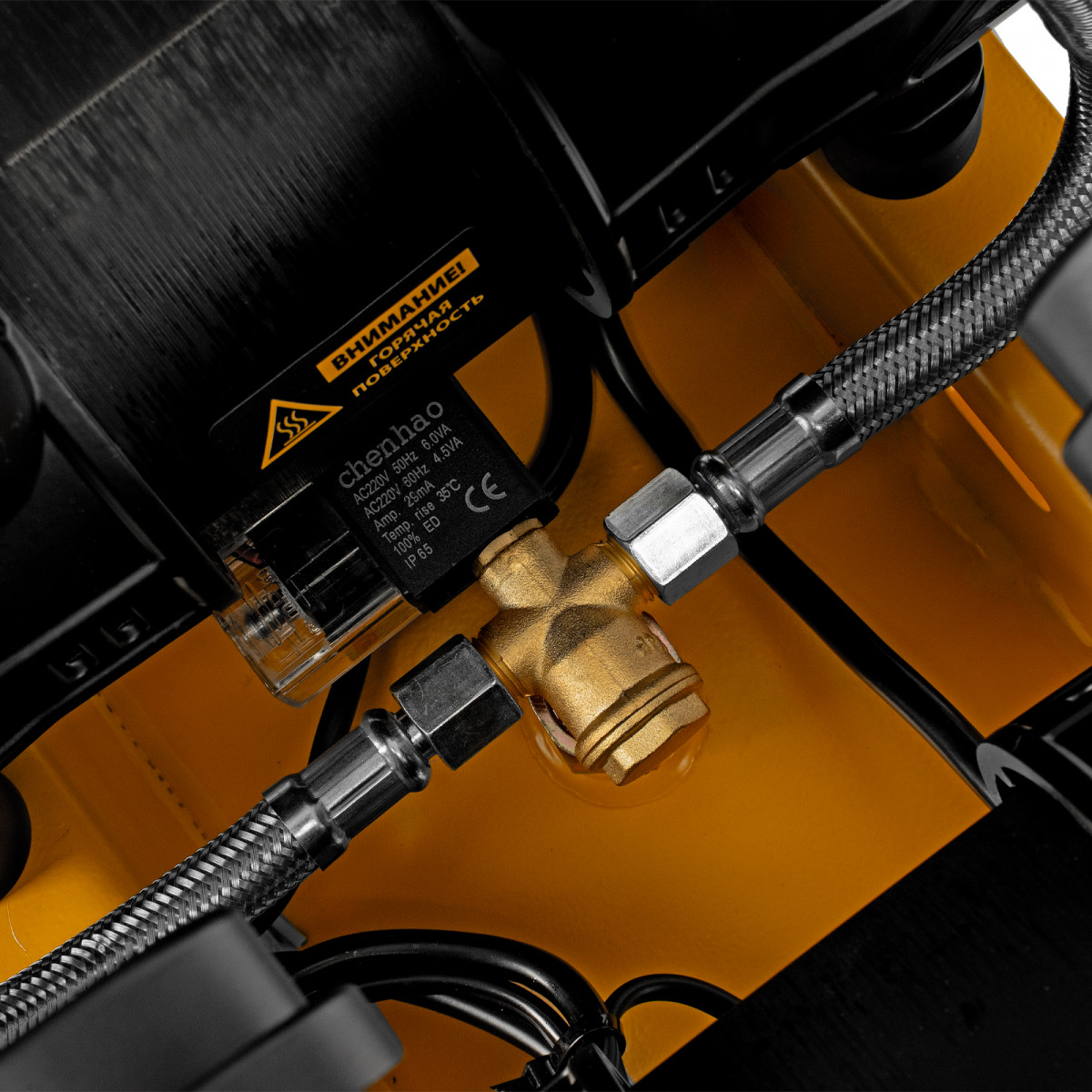 • Безопасность — в случае превышения максимального давления в ресивере срабатывает предохранительный клапан, что позволяет избежать аварийных ситуаций.