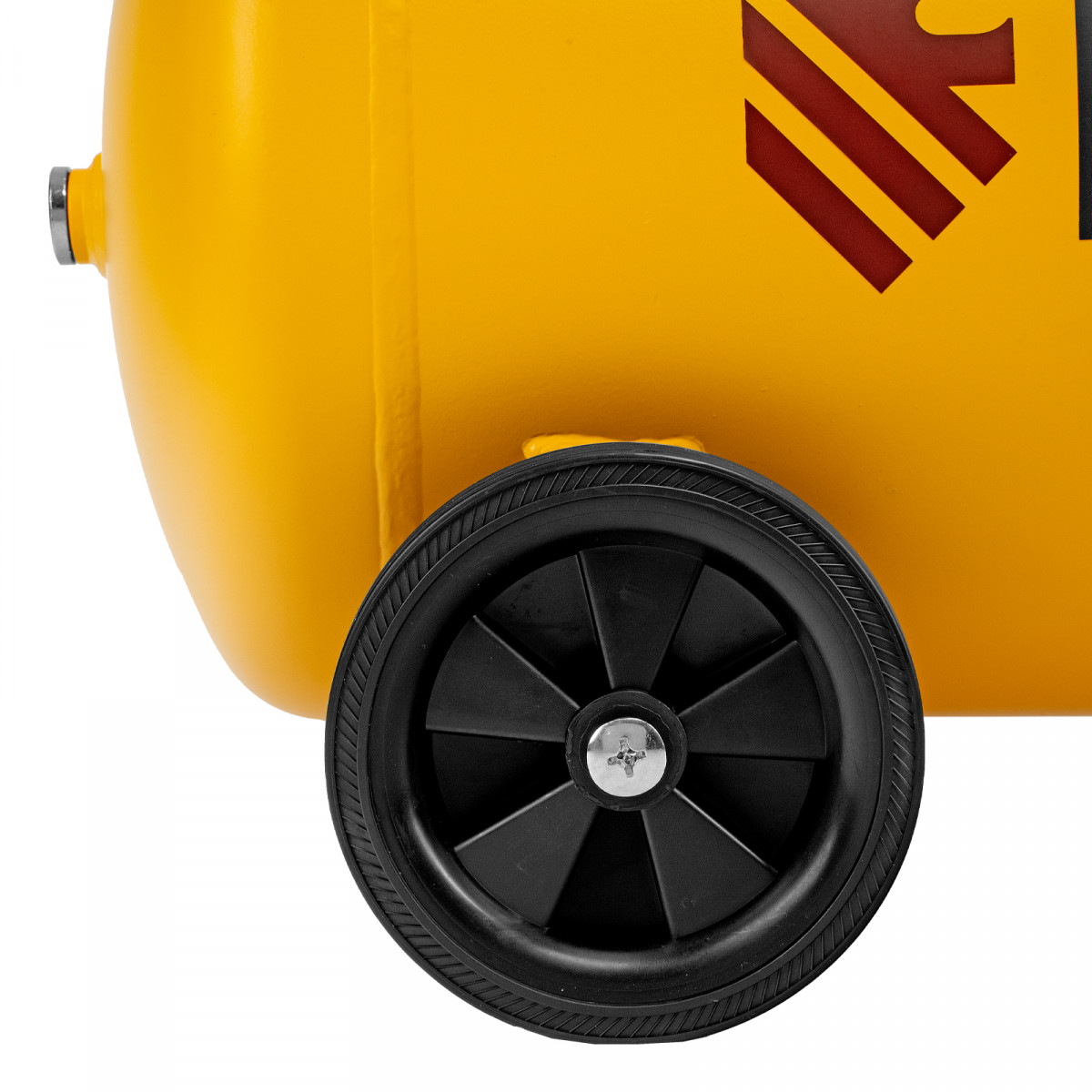 • Мобильность — 2 колеса и транспортировочная рукоятка упрощают перемещение компрессора по рабочей зоне.
