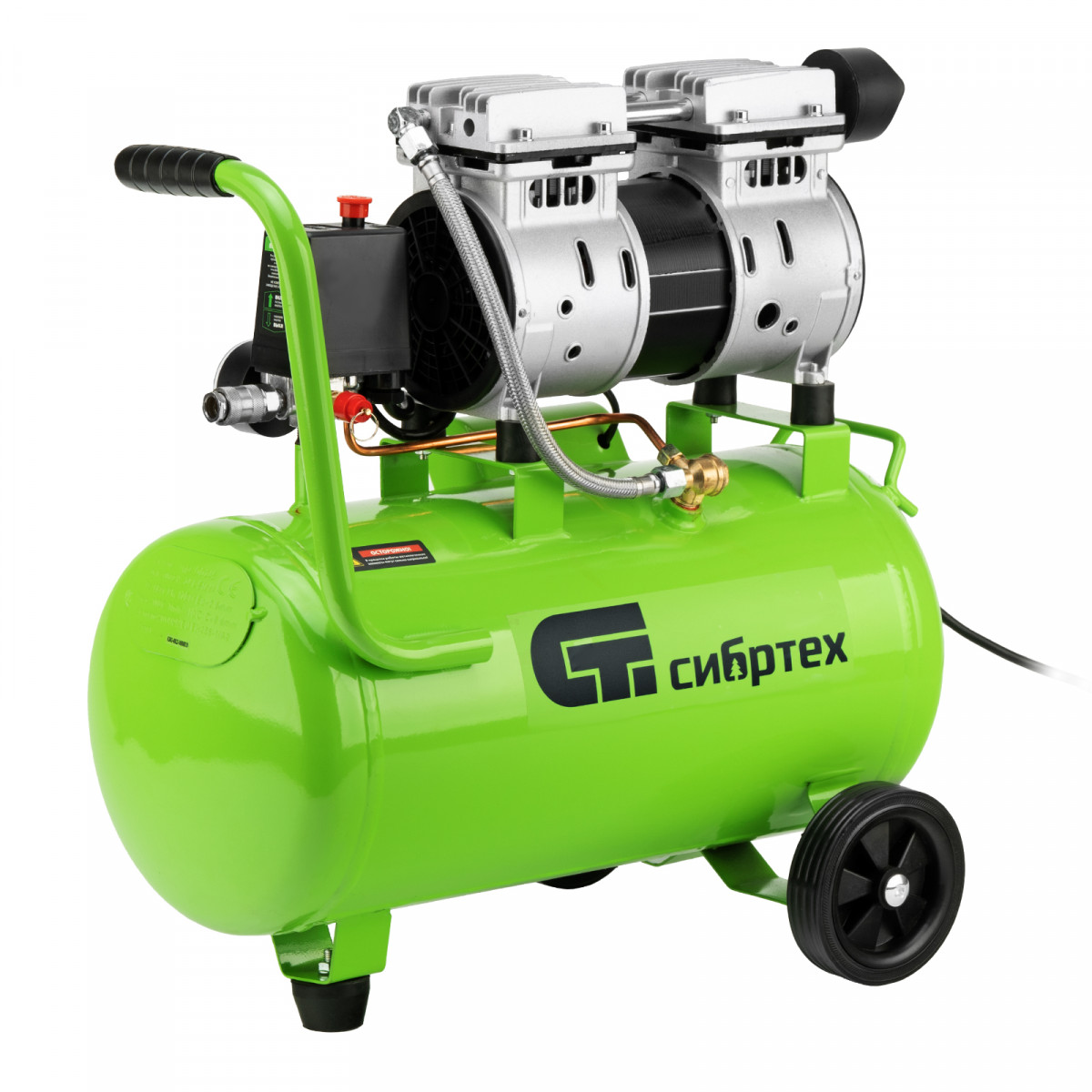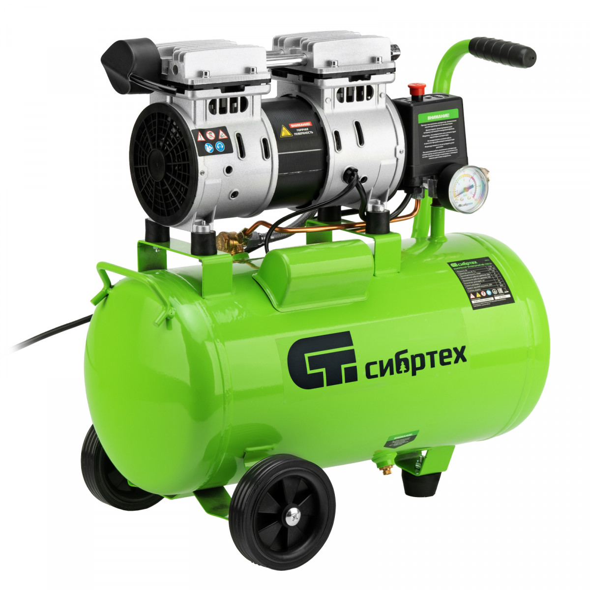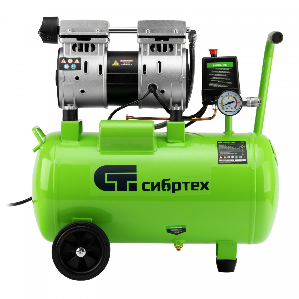 Компрессор безмаслянный малошумный МБ 1100/24,1100 Вт, 24 л, 170 л/мин Сибртех