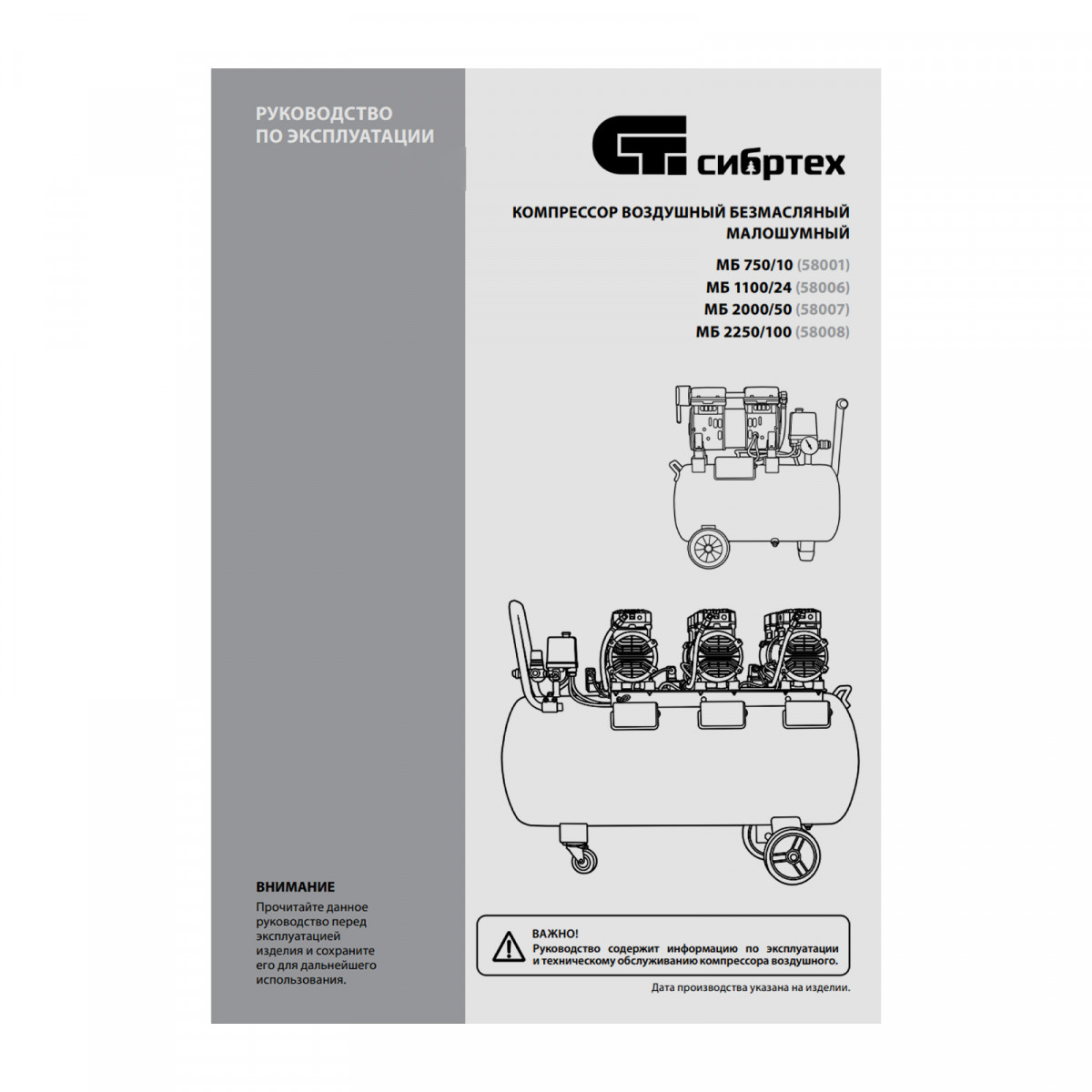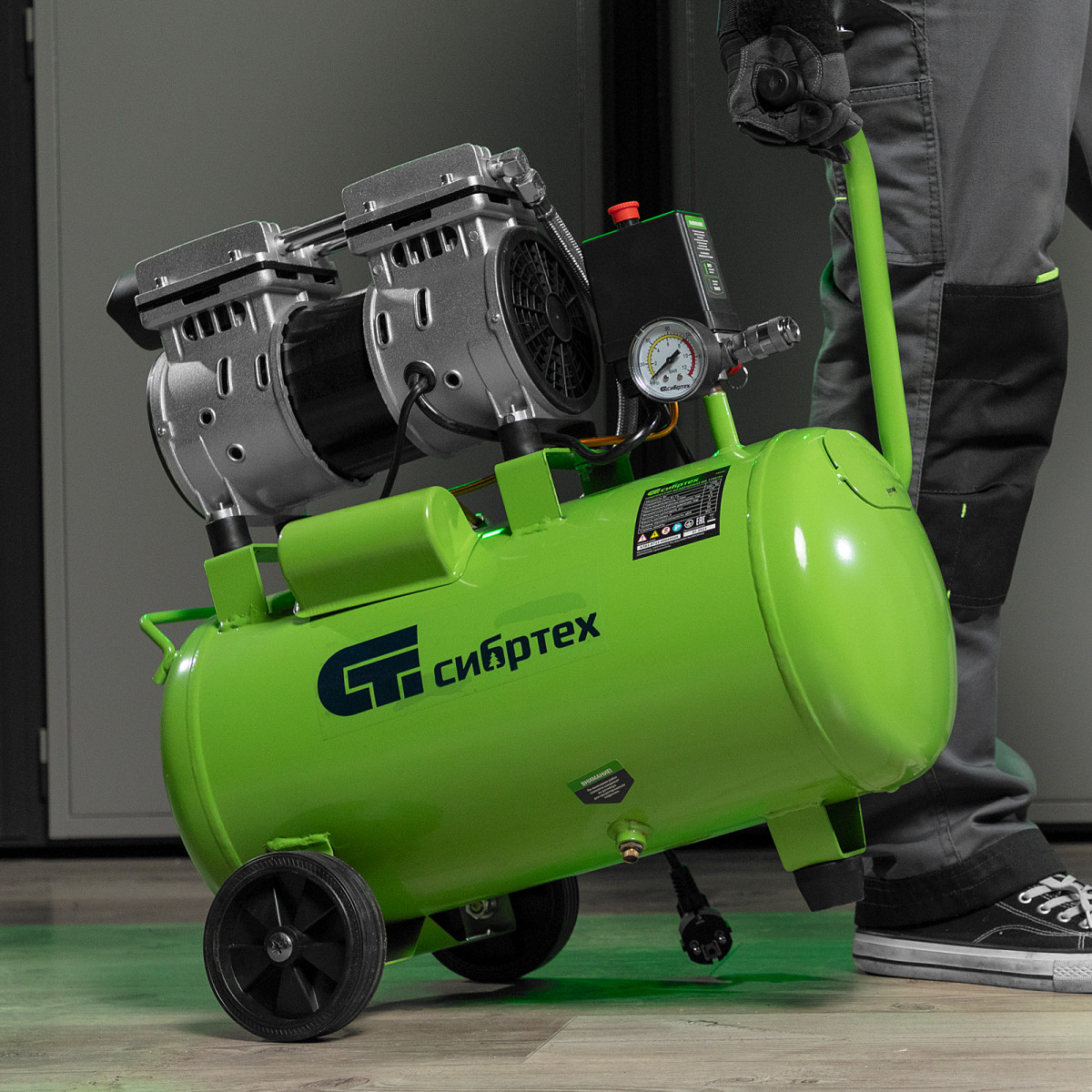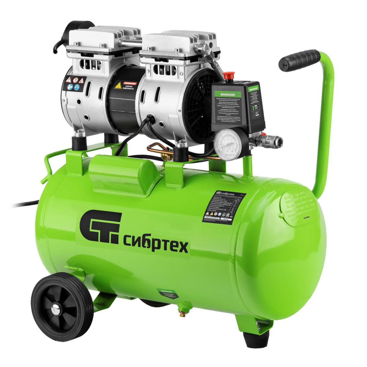 Компрессор безмаслянный малошумный МБ 1100/24,1100 Вт, 24 л, 170 л/мин Сибртех