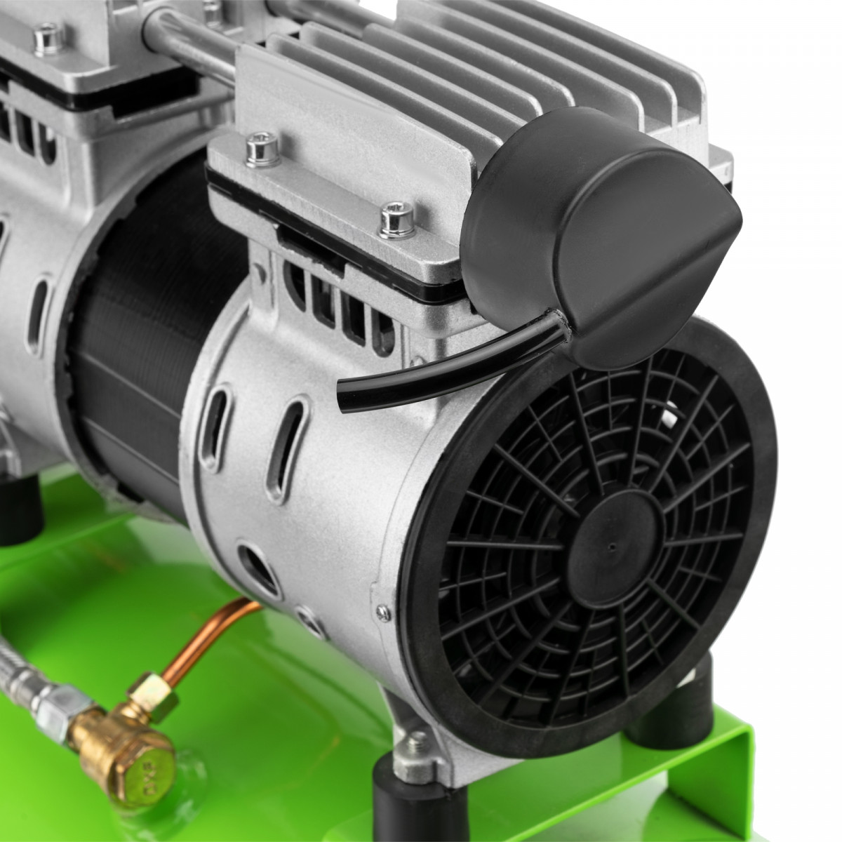 - Продуманная конструкция — виброопора обеспечивает устойчивость компрессора и гасит колебания, возникающие во время работы.