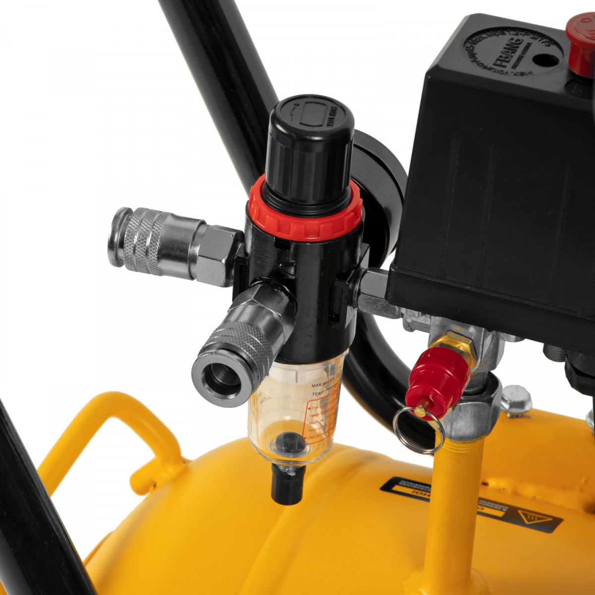 - Регулятор давления на выходе — можно выбрать оптимальный режим подачи воздуха в соответствии с характеристиками пневмоинструмента.