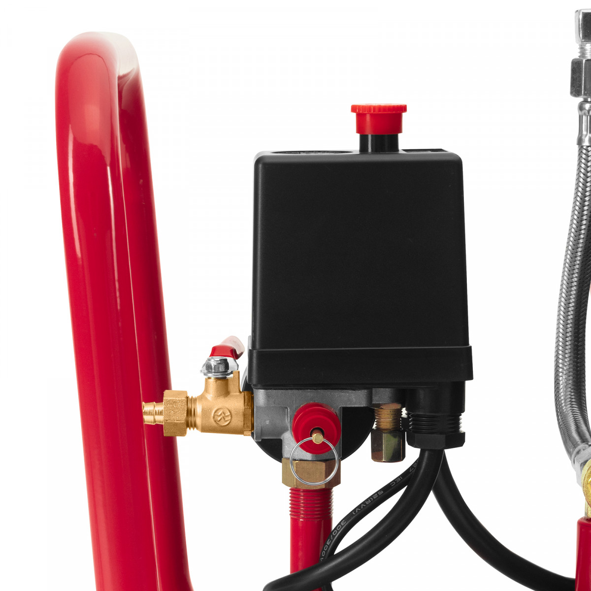 • Автономная работа — прессостат осуществляет автоматический контроль давления воздуха в ресивере, запуская и останавливая компрессор при необходимости.