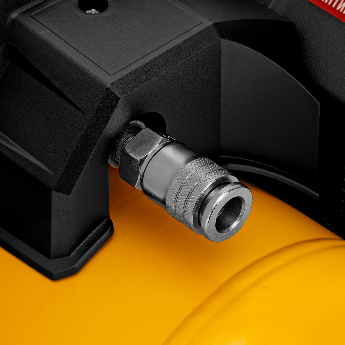 - Удобный контроль давления в ресивере — на компрессор установлен механический манометр, «смотрящий» вверх, поэтому для снятия показаний не нужно присаживаться.