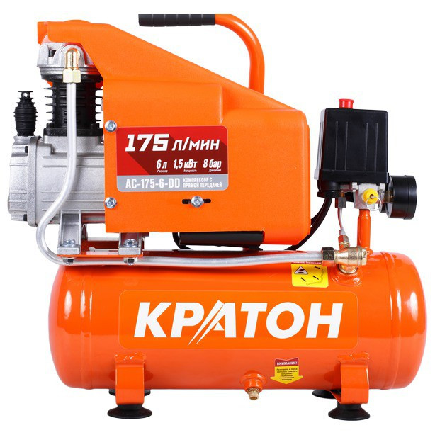 Компрессор с прямой передачей бренда Кратон AC-175-6-DD используется для перемещения и нагнетания сжатых воздушных масс. Применяется с пневмоинструментами. Защитный кожух и предохранительный клапан увеличивают износостойкость оборудования и делают работу с ним простой и безопасной. За плавный старт отвечает прямая передача, что позволяет выполнять работу без рывков и шума.