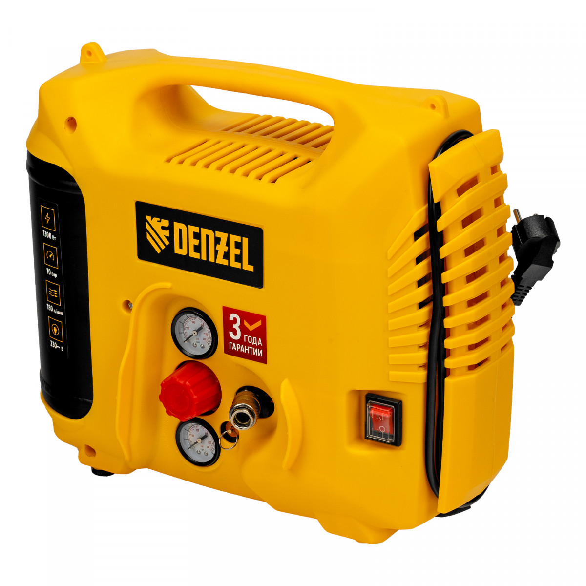 Компрессор воздушный DL1300, 10 бар, 1,3 кВт 180 л/мин 5 л, с набором аксессуаров Denzel