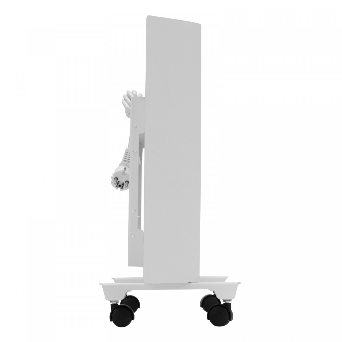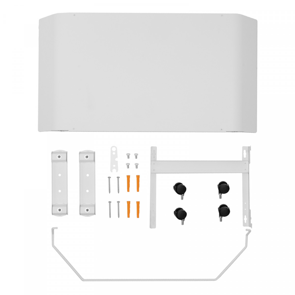 - Напольная или настенная установка — в комплект поставки включена цельнометаллическая крепежная рамка для стены, а также стальные ножки с колесами.