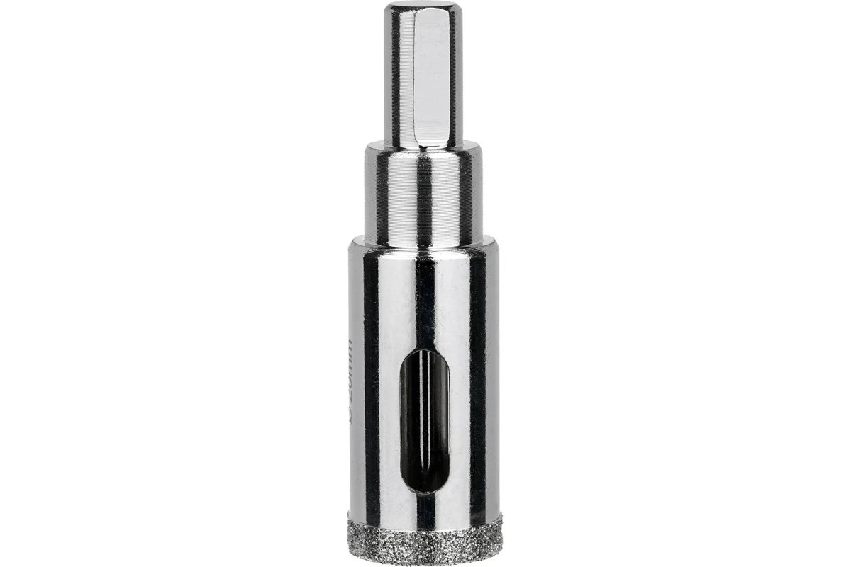 Коронка алмазная по керамограниту 16 мм с центрирующим сверлом применяется для эффективного сверления керамогранита, плитки, стекла. Коронка изготовлена из прочной углеродистой стали, выдерживающей значительные механические нагрузки, и покрыта коррозионностойким покрытием, защищающим коронку от ржавчины и продлевающим срок ее службы. В качестве режущего материала используется двухрядный слой высококонцентрированного синтетического алмаза, нанесенного на режущую кромку коронки.