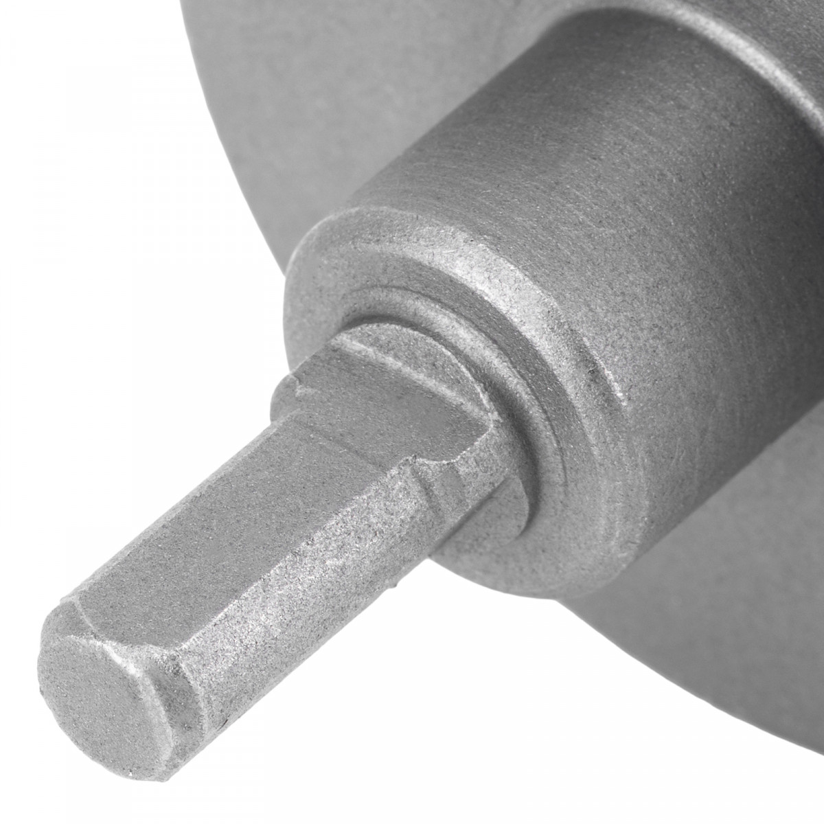 Твердосплавные зубья обеспечивают высокую скорость сверления благодаря режущим пластинам твердостью 91-92 HRC.