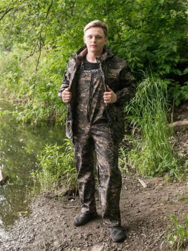 Куртка: Прямая с утяжкой в низу. Капюшон не отстежной регулируемый в двух плоскостях Рукав широкий манжет. Четыре накладных кармана на клепках. Брюки полукомбинезон: С регулируемыми лямками по высоте Прямые с накладными карманами по бокам и врезными в области талии. Ширинка молния двух замковая.